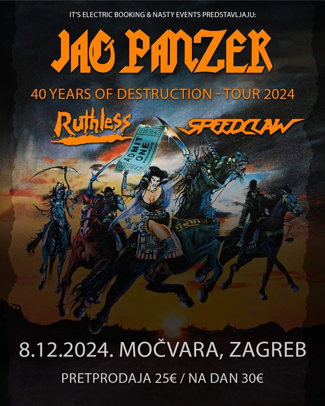 Specijalni Gosti i Line-Up Uz Jag Panzer, nastupit će i posebni gosti – američki bend Ruthless i hrvatski Speedclaw, poznat po energičnim izvedbama koje osvajaju publiku diljem Europe. Ova kombinacija obećava pravu heavy metal poslasticu koja se ne propušta!