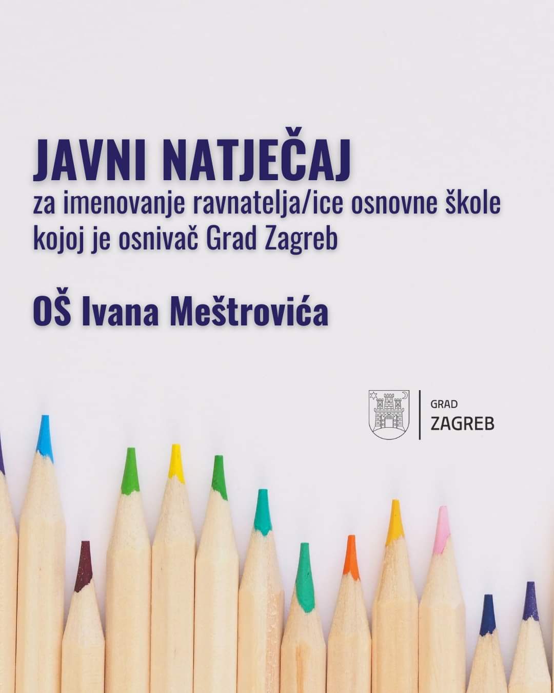 Grad Zagreb objavio je javni natječaj za imenovanje ravnatelja/ice Osnovne škole Ivana Meštrovića. Riječ je o natječaju koji nudi priliku kvalificiranim i iskusnim stručnjacima iz obrazovnog sektora da preuzmu upravljanje jednom od osnovnih škola pod upravom Grada Zagreba.