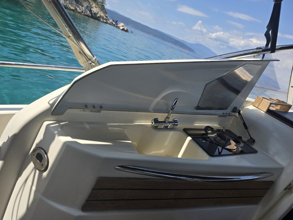 Dvostruki pogon Honda 225 KS omogućuje snažno ubrzanje, sigurnu plovidbu i stabilnost čak i pri zahtjevnijim uvjetima na moru. Walkaround koncept omogućuje jednostavno kretanje po palubi, dok kabina nudi dovoljno prostora za višednevni boravak.