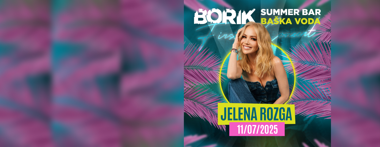 Ne propustite ljetni koncert Jelene Rozge 11.07.2025. u Borik Summer Baru u Baškoj Vodi! Osigurajte svoje ulaznice na Eventim.hr i uživajte u nezaboravnoj večeri uz njezine najveće hitove!