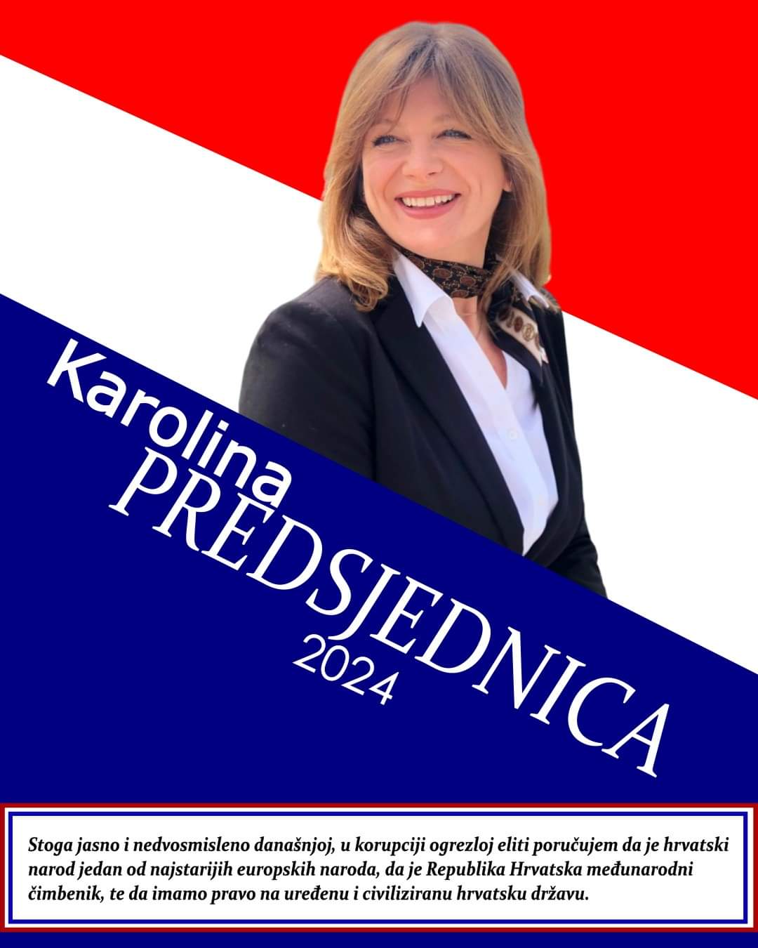 Predsjednički izbori u Hrvatskoj 2024. godine najavljuju novu eru, a među istaknutim kandidatima je Karolina, koja donosi osvježenje na političkoj sceni. Sa snažnim naglaskom na antikorupcijsku politiku i integritet, Karolina se predstavlja kao kandidatkinja koja vjeruje u uređen i civiliziran sustav, slobodan od političke korupcije.