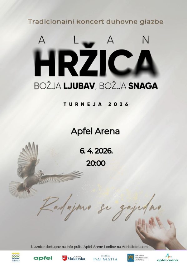 ByGradeMoj3 travnja, 2026Alan Hržica kreće na veliku turneju. Početak 6.4. u Makarskoj (Apfel Arena). Večer slavljenja uz poznate duhovne pjesme. Poznati izvođač suvremene duhovne glazbe...