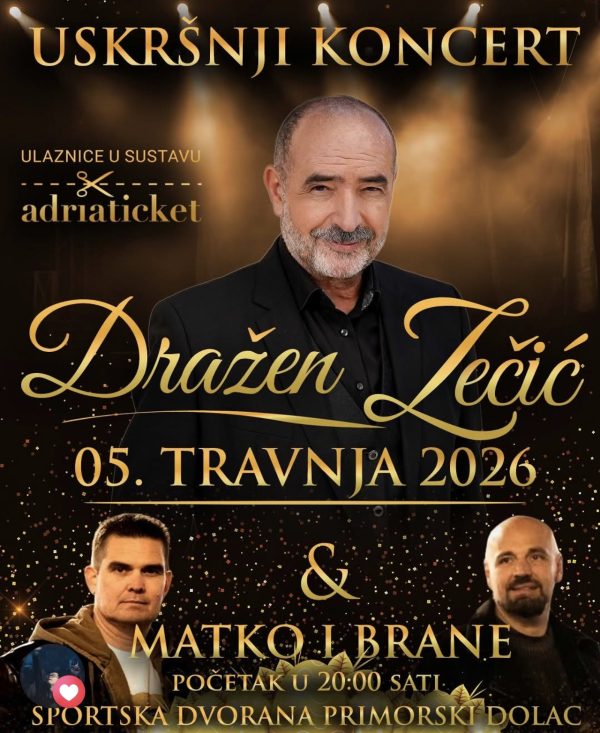 ByGradeMoj24 ožujka, 2026Dražen Zečić i Matko i Brane nastupaju 5. travnja u Primorskom Dolcu. Uskršnji koncert u sportskoj dvorani, ulaznice dostupne online. Primorski Dolac ove...