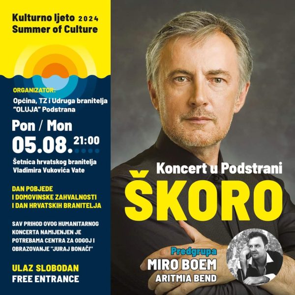 ByGradeMoj3 kolovoza, 2024Koncert Miroslava Škore u Podstrani Dragi Podstranjani, dragi podstranski gosti i posjetitelji! Humanitarnim koncertom koji organiziramo povodom našeg najvećeg državnog praznika i najdraže...