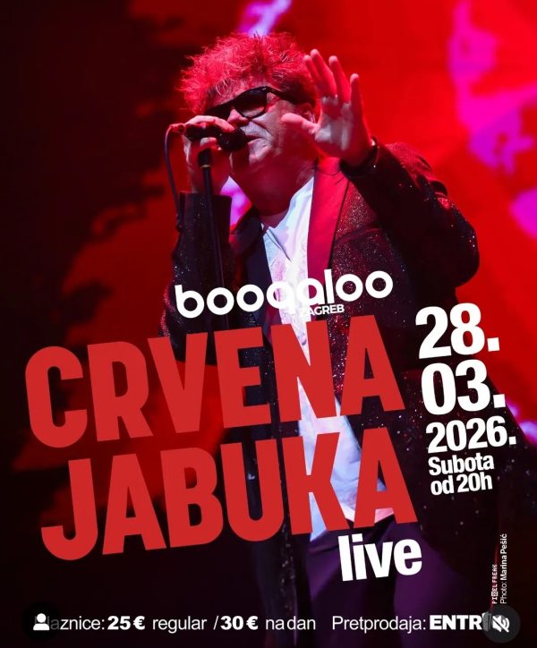 ByGradeMoj1 veljače, 2026Crvena jabuka dolazi u Zagreb 28.3.2026. Koncert u Boogaloou donosi bezvremenske hitove i večer emocija za sve generacije. Zagreb će u subotu, 28....