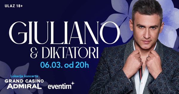 Giuliano & Diktatori dolaze u Zagreb 6. ožujka od 20 sati. Koncert se održava u Grand Casino Admiral, ulaz 18+, ulaznice putem Eventima....