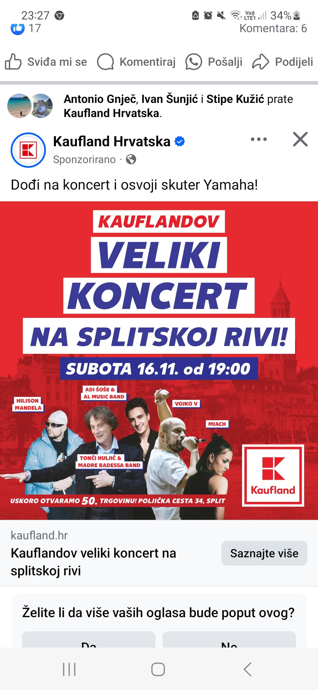 Kauflandov veliki koncert na splitskoj Rivi obećava nezaboravan provod, a uz malo sreće možda baš vi odete kući s novim Yamaha skuterom. Dođite, zabavite se i budite dio ovog posebnog događaja!