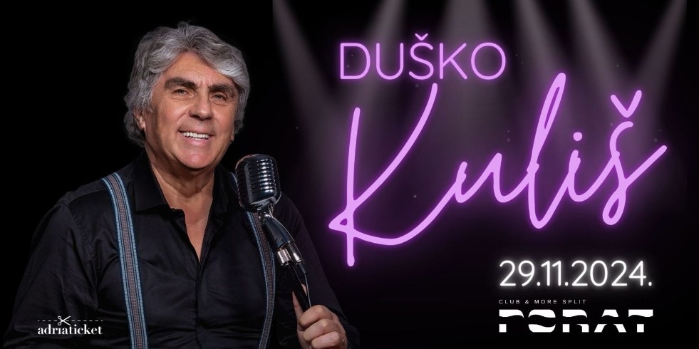 Poznati hrvatski pjevač Duško Kuliš dolazi u Split 29.11.2024., gdje će održati koncert u popularnom klubu Porat Split. Ovo je savršena prilika za sve ljubitelje domaće glazbe da uživo čuju hitove jednog od najomiljenijih izvođača narodne glazbe. Duško Kuliš već desetljećima osvaja srca publike svojim emotivnim pjesmama i prepoznatljivim stilom, a ovaj koncert obećava vrhunski glazbeni doživljaj.