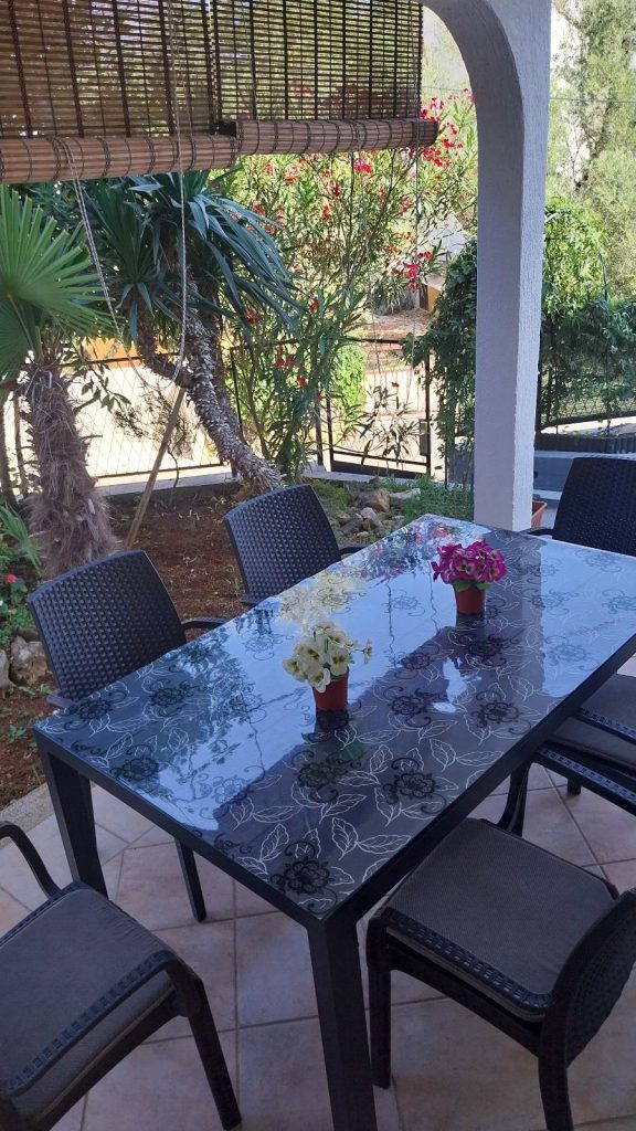 Kuća ima osigurano parkiranje za 5 do 7 vozila, što je iznimno važno za turističku namjenu. Udaljenost od mora iznosi oko 800 metara, što omogućuje brz pristup plaži, ali i dovoljno udaljenosti za miran boravak.