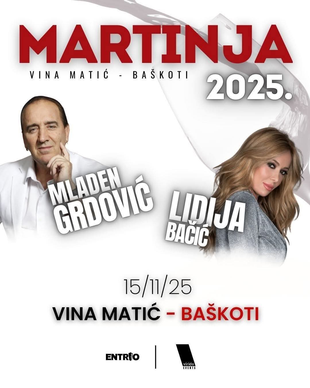 Baškoti će 15. studenoga 2025. ponovno biti središte najboljeg glazbenog provoda u regiji, jer u prekrasnom prostoru Vina Matić – Baškoti stižu dvije glazbene zvijezde koje garantiraju nezaboravnu večer – Mladen Grdović i Lidija Bačić (Lille). Tradicionalno slavlje Martinja u organizaciji Virido Events i uz podršku sustava Entrio postaje jedan od najposjećenijih događaja u okolici, a ovogodišnji lineup diže ljestvicu više nego ikada prije.
