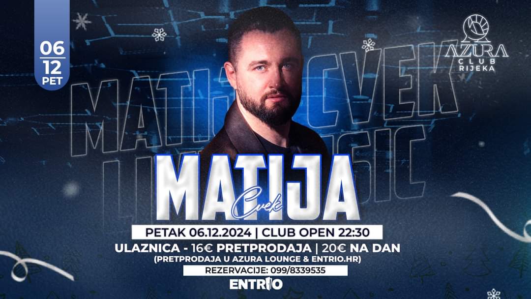 Koncert Matije Cveka u Azura Clubu savršen je uvod u blagdansko raspoloženje. Pozovite prijatelje i pridružite se u večeri ispunjenoj vrhunskom glazbom i nezaboravnim trenucima. Više informacija i ulaznice pronađite na Entrio.hr ili posjetite Azura Lounge u Rijeci.