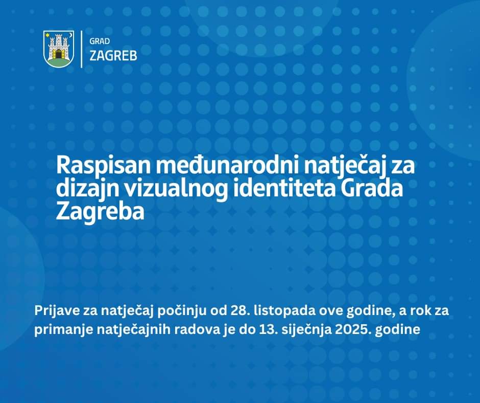 Grad Zagreb raspisao je međunarodni natječaj za dizajn novog vizualnog identiteta, pozivajući dizajnere iz cijelog svijeta da prijave svoje ideje. Natječaj počinje 28. listopada, a svi zainteresirani imaju priliku poslati svoje radove do 13. siječnja 2025. godine.