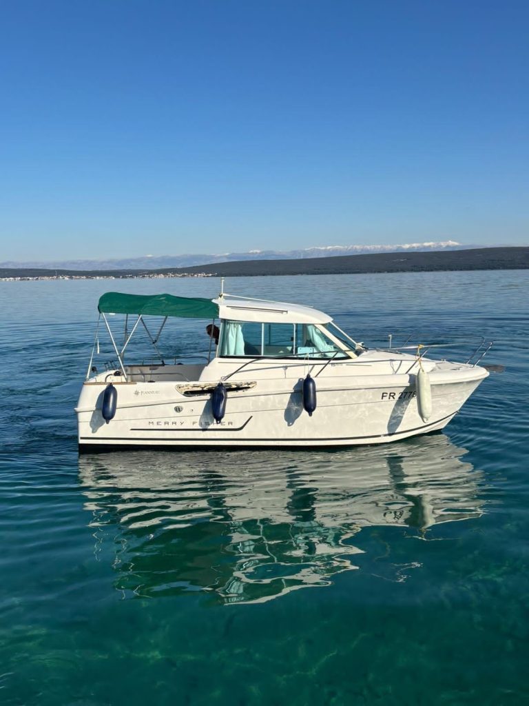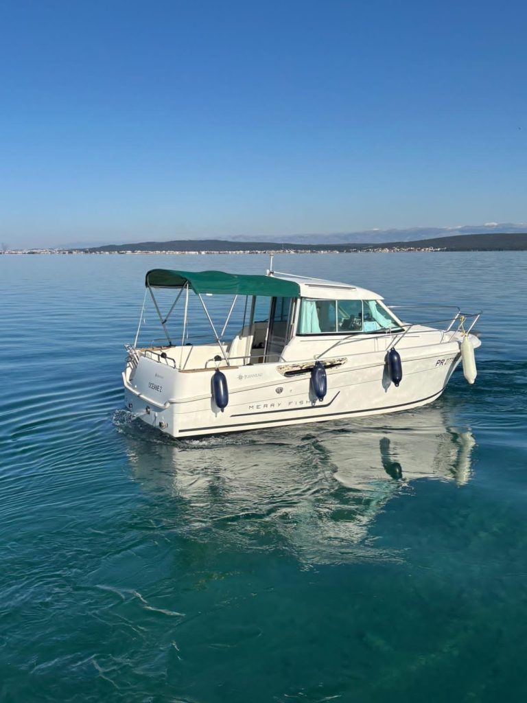 Jeanneau Merry Fisher 655 u Dobropoljani, cijena 35.000 €. Volvo dizel 110 KS, 803 sata, jako očuvan i spreman za sezonu.
