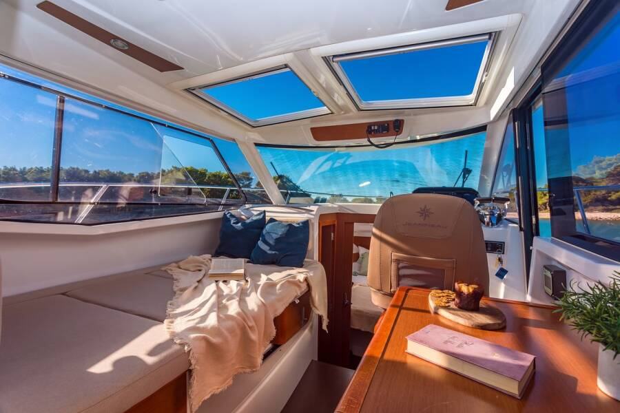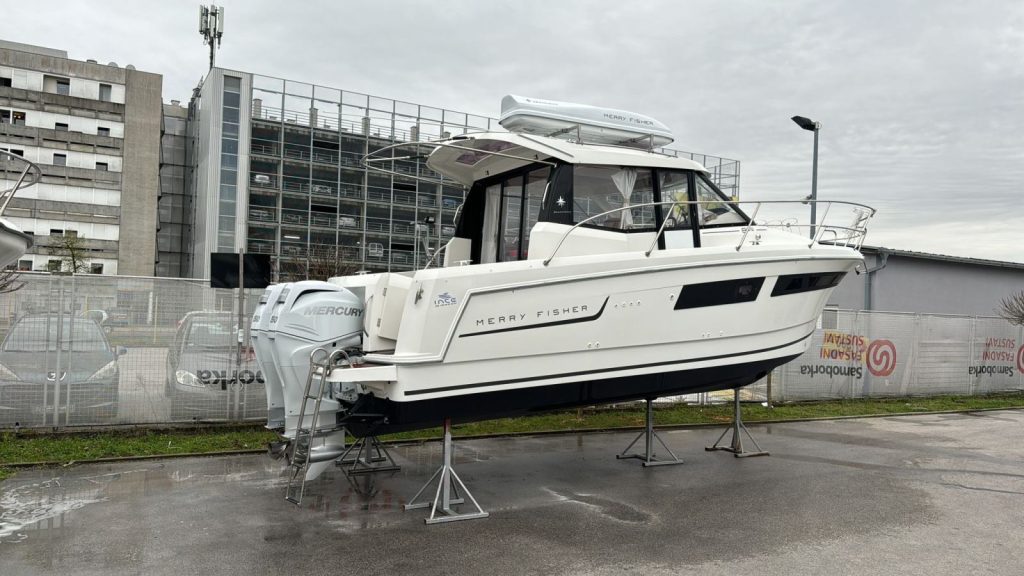 Na prodaju je brod Jeanneau Merry Fisher 855, ukupne dužine 8,72 m, opremljen vanjskim benzinskim motorom snage 111 kW, poznat po stabilnosti, sigurnosti i iznimno funkcionalnom rasporedu prostora.