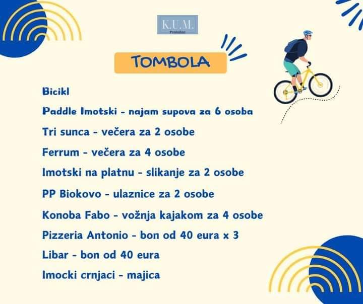 Početna Kultura & Zabava NAGRADNA TOMBOLA JUBILARNE 15. BICIKLIJADE IMOTSKE KRAJINE