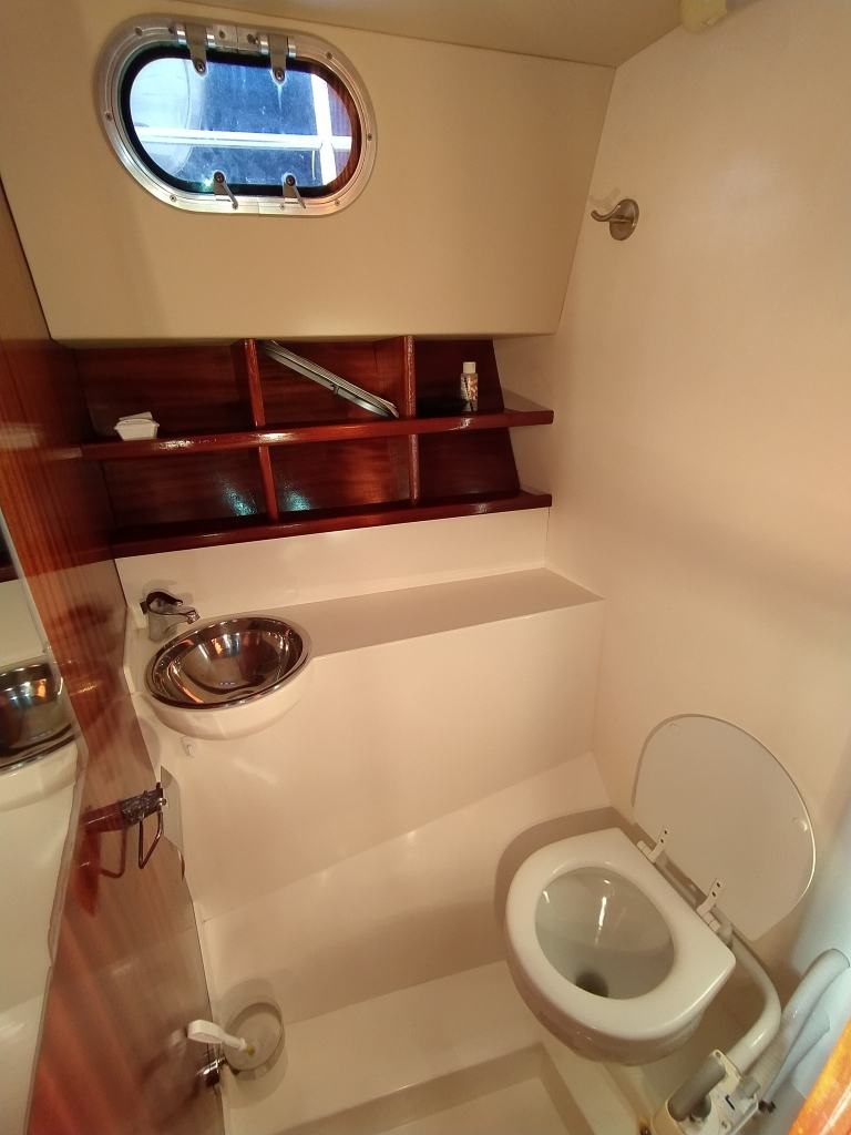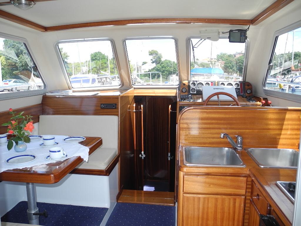 Plovilo raspolaže s tri kabine i šest ležajeva, WC-om te tuš kabinom s toplom i hladnom vodom, što omogućuje komforan boravak tijekom višednevnog ili tjednog chartera. Unutarnji raspored osmišljen je funkcionalno, s dovoljno prostora za boravak, odmor i pohranu opreme.