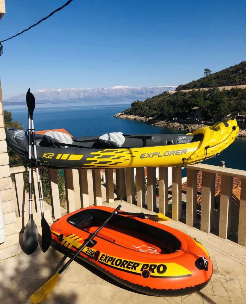 Dodatna oprema uključuje WiFi, Smart TV, perilicu posuđa, aparat za kavu, kuhalo za vodu, ručnike, sušilo za kosu, kao i kajak i gumeni brod za uživanje na moru.
