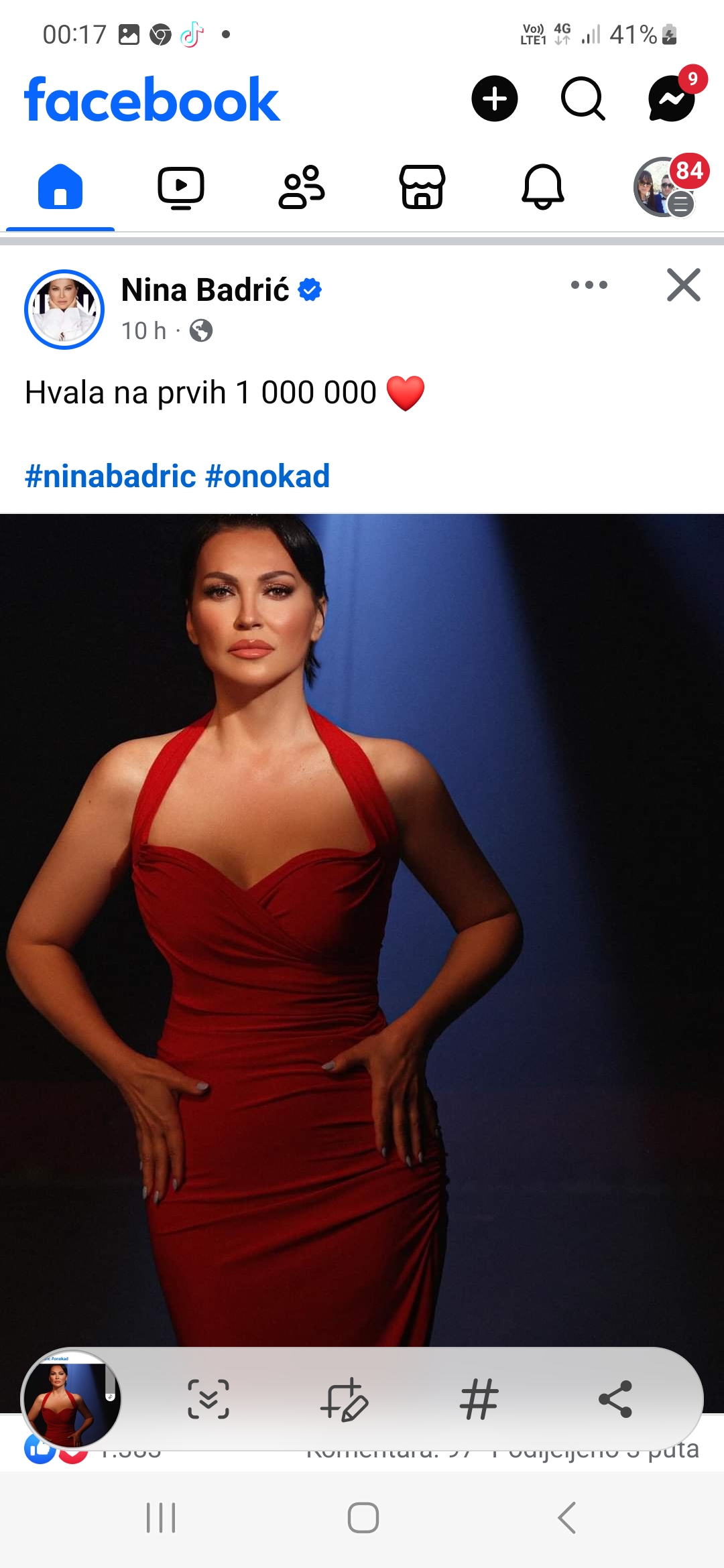 Nina Badrić, jedna od najpoznatijih hrvatskih pjevačica, proslavila je veliki uspjeh na društvenim mrežama, dosegnuvši impresivnih milijun pratitelja. U objavi na Facebooku, zahvalila se svim svojim obožavateljima riječima: “Hvala na prvih 1 000 000 ❤️”, čime je izrazila zahvalnost za ljubav i podršku koju dobiva od svojih vjernih fanova.