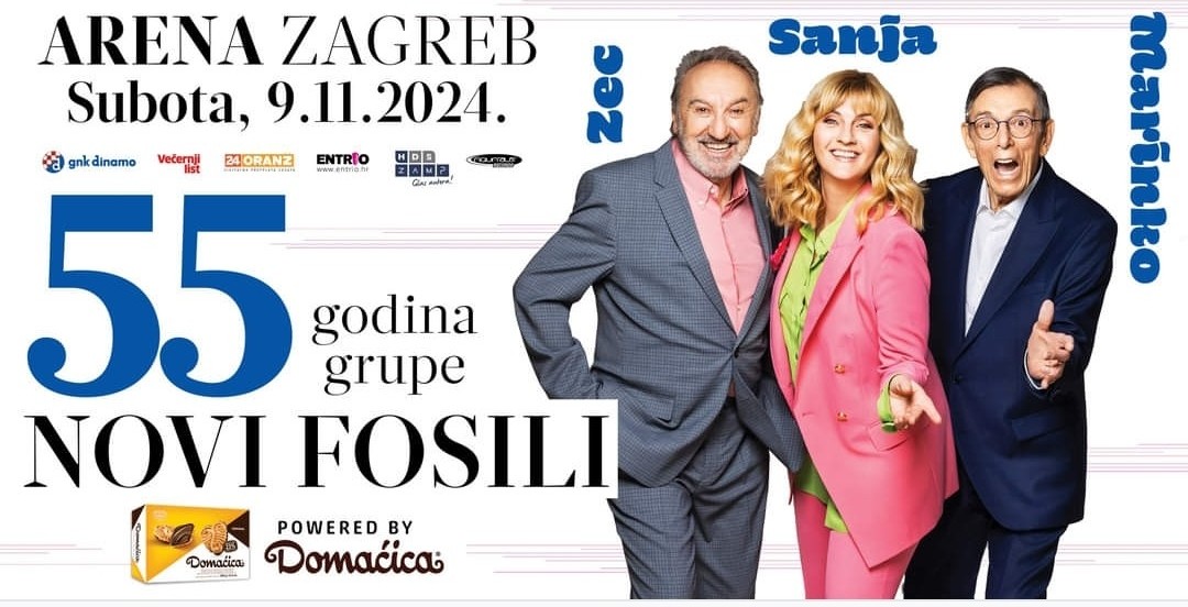 Novi Fosili, jedna od najdugovječnijih i najpopularnijih glazbenih grupa u Hrvatskoj, slavi nevjerojatnih 55 godina postojanja velikim koncertom koji će se održati u Areni Zagreb 9. studenog 2024. godine. S trojcem Sanja Doležal, Zec i Marinko Colnago u središtu pozornosti, publiku očekuje nezaboravna večer ispunjena najvećim hitovima i emocijama.