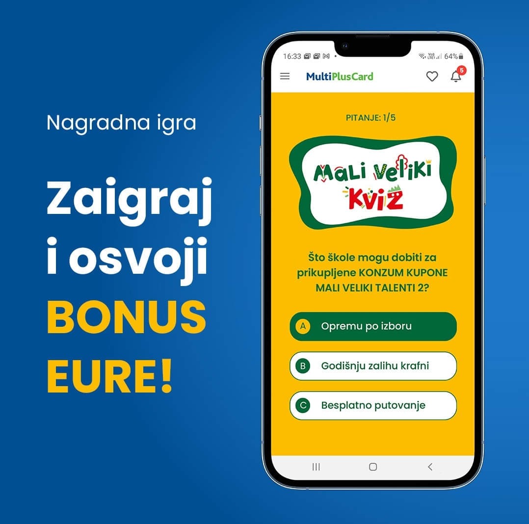 Multi Plus Card aplikacija donosi uzbudljivu priliku za sve korisnike – sudjelujte u “Mali veliki kviz” i osvojite vrijedne nagrade u bonus eurima! Ova nagradna igra omogućava sudionicima ne samo zabavu kroz rješavanje kviza, već i mogućnost osvajanja atraktivnih bonusa te posebnih kupona “Mali veliki talenti 2”.