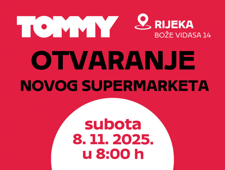 Nova Tommy prodavaonica otvara se u Rijeci na adresi Bože Vidasa 14 u subotu, 8. studenog 2025. u 8:00 h! Posjetite otvorenje, osvojite poklone, uživajte u degustacijama i iskoristite kupon s 10% popusta na sljedeću kupnju.