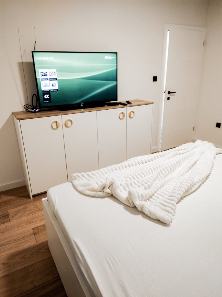 Stan je kompletno renoviran 2024. godine te luksuzno i moderno namješten. Opremljen je svim potrebnim kućanskim aparatima, uključujući perilicu posuđa i klima uređaj. Protuprovalna vrata dodatno povećavaju sigurnost.