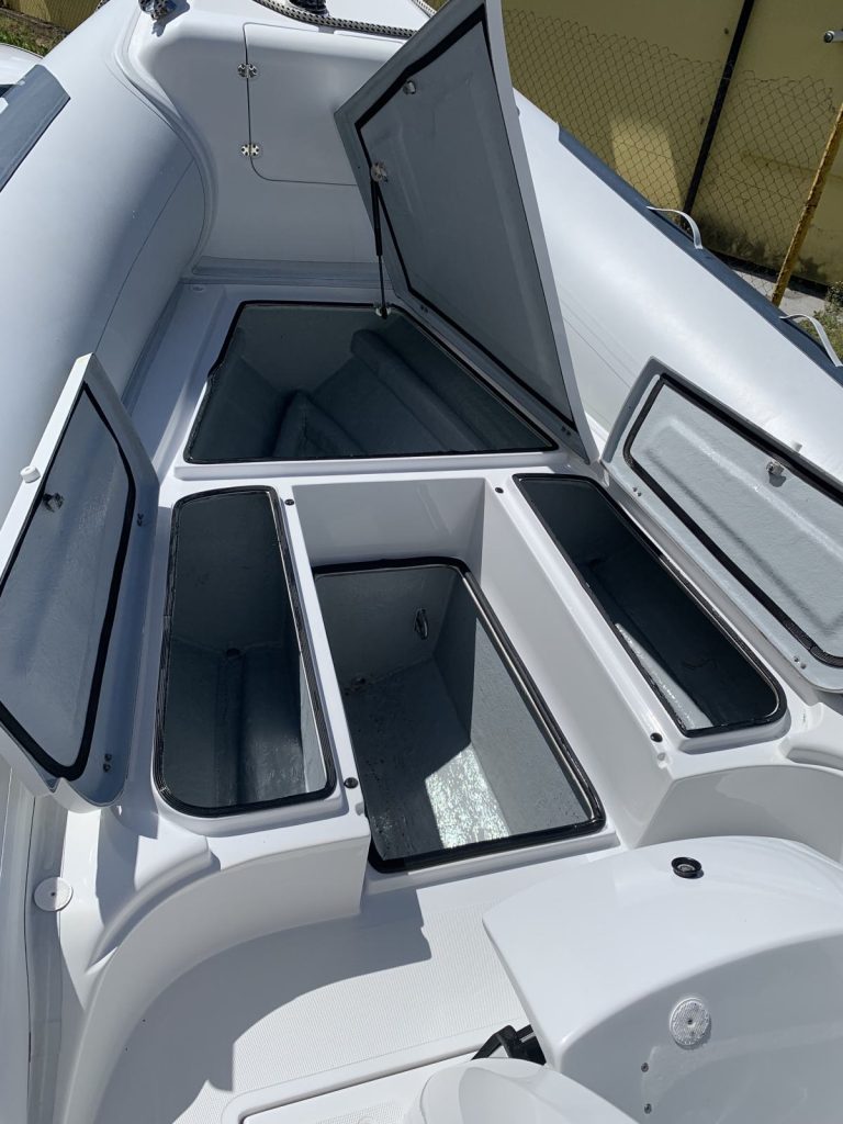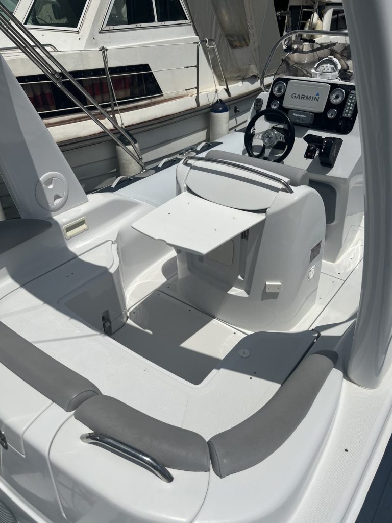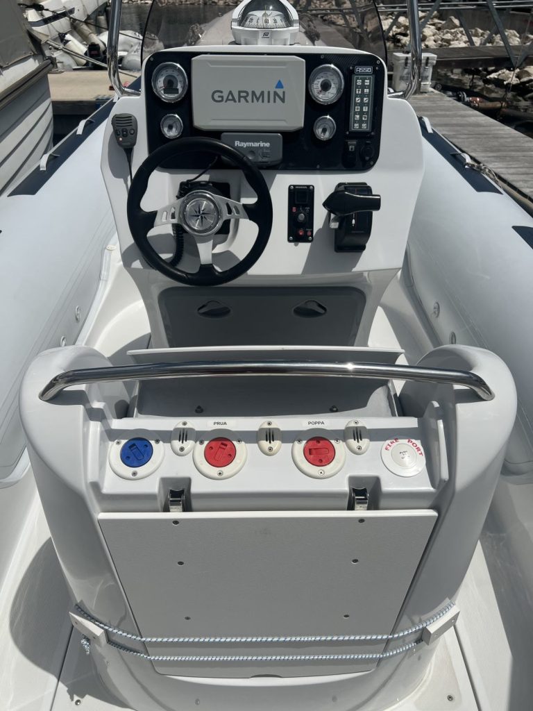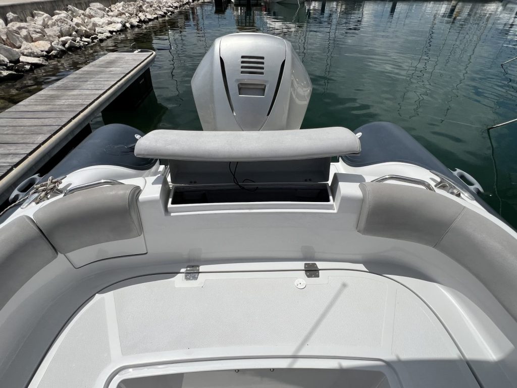 Trup je izrađen od vinyl estera i karbona, dok su tubusi Hypalon 1700 g, što jamči dugotrajnost i otpornost na zahtjevne morske uvjete. Izrazito veliki V na krmi (23°) osigurava stabilnost, sigurnost i vrhunske maritimne sposobnosti. Težina od 1.670 kg dodatno potvrđuje ozbiljnu konstrukciju i kvalitetu izrade.