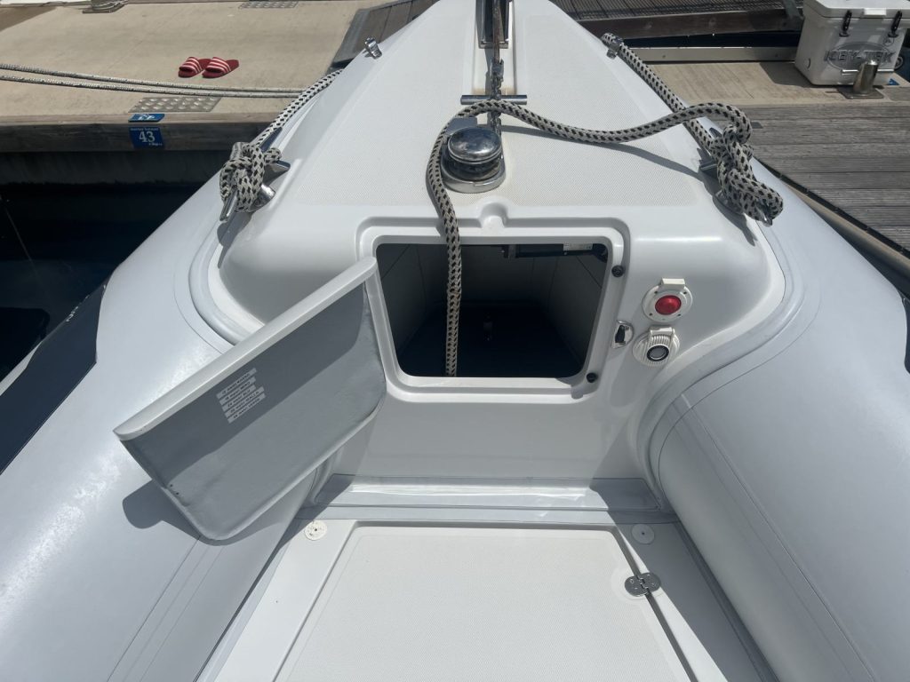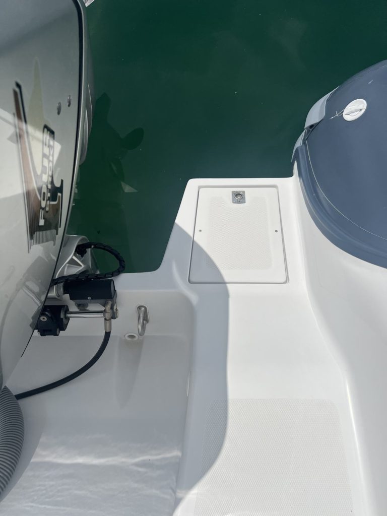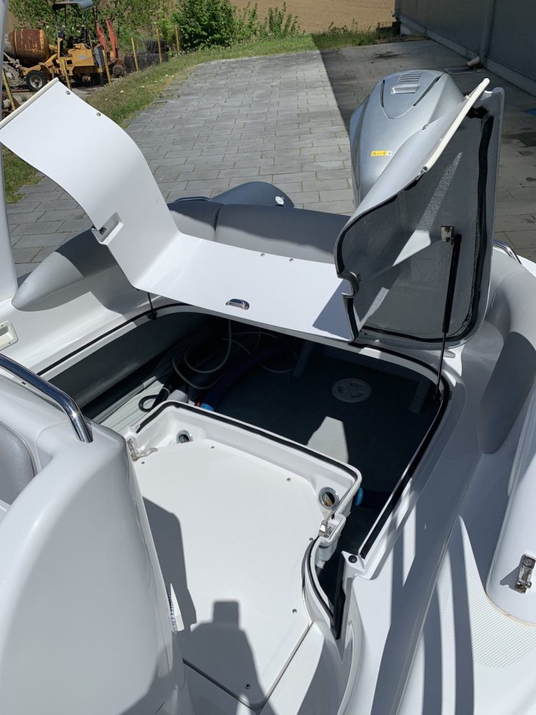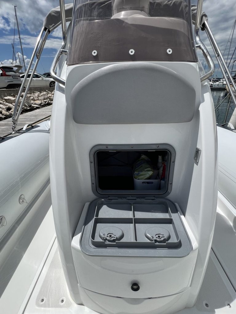 Trup je izrađen od vinyl estera i karbona, dok su tubusi Hypalon 1700 g, što jamči dugotrajnost i otpornost na zahtjevne morske uvjete. Izrazito veliki V na krmi (23°) osigurava stabilnost, sigurnost i vrhunske maritimne sposobnosti. Težina od 1.670 kg dodatno potvrđuje ozbiljnu konstrukciju i kvalitetu izrade.