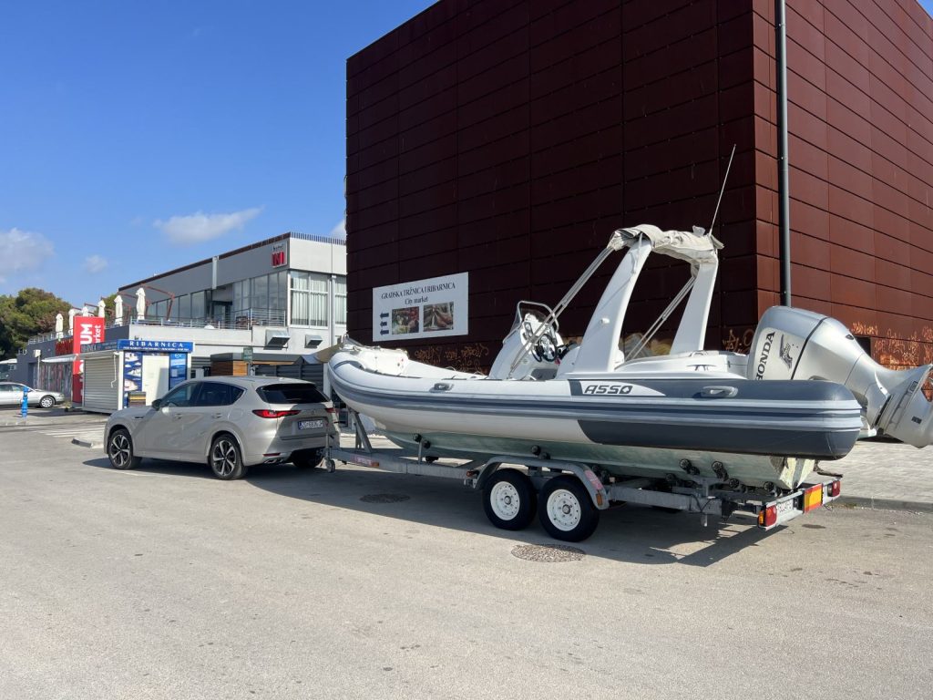 Na prodaju je gumenjak ASSO Sensation 72, dužine 7,30 metara, opremljen snažnim vanbrodskim motorom Honda 225 KS (165 kW) s 810 radnih sati. Riječ je o plovilu iz 2012. godine, u vlasništvu prvog vlasnika, s urednom servisnom knjigom – motor je od prvog dana servisiran kod istog servisera.