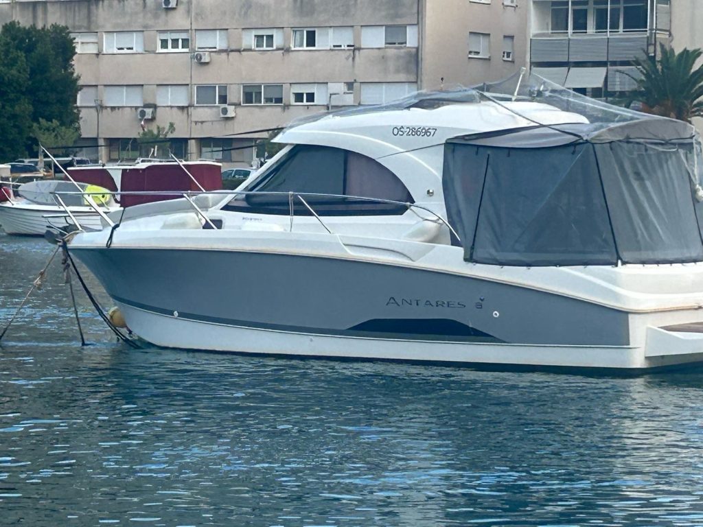 Na prodaju je brod Beneteau Antares 8S, ukupne dužine 8,50 m, opremljen unutarnjim dizel motorom Nanni T4 snage 147 kW, s ukupno 540 radnih sati. Plovilo se prodaje po cijeni od 69.000 € i predstavlja izvrsnu priliku za kupce koji traže provjeren, snažan i pouzdan brod za Jadran.