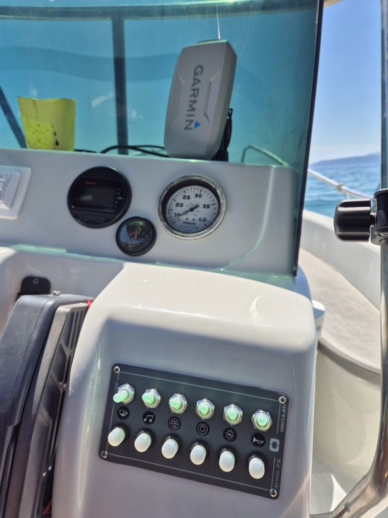 Raspored palube nudi dovoljno prostora za boravak, kretanje i ribolov, dok centralna konzola pruža dobru zaštitu i preglednost tijekom vožnje. Dodana moderna elektronika i rasvjeta dodatno povećavaju sigurnost i komfor.