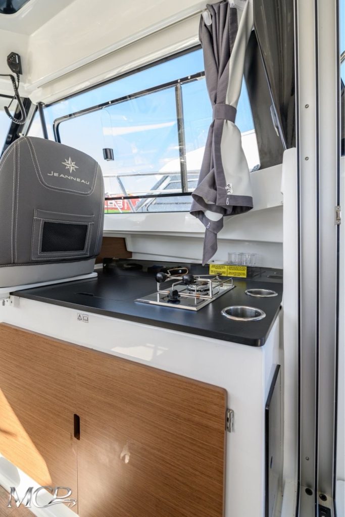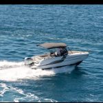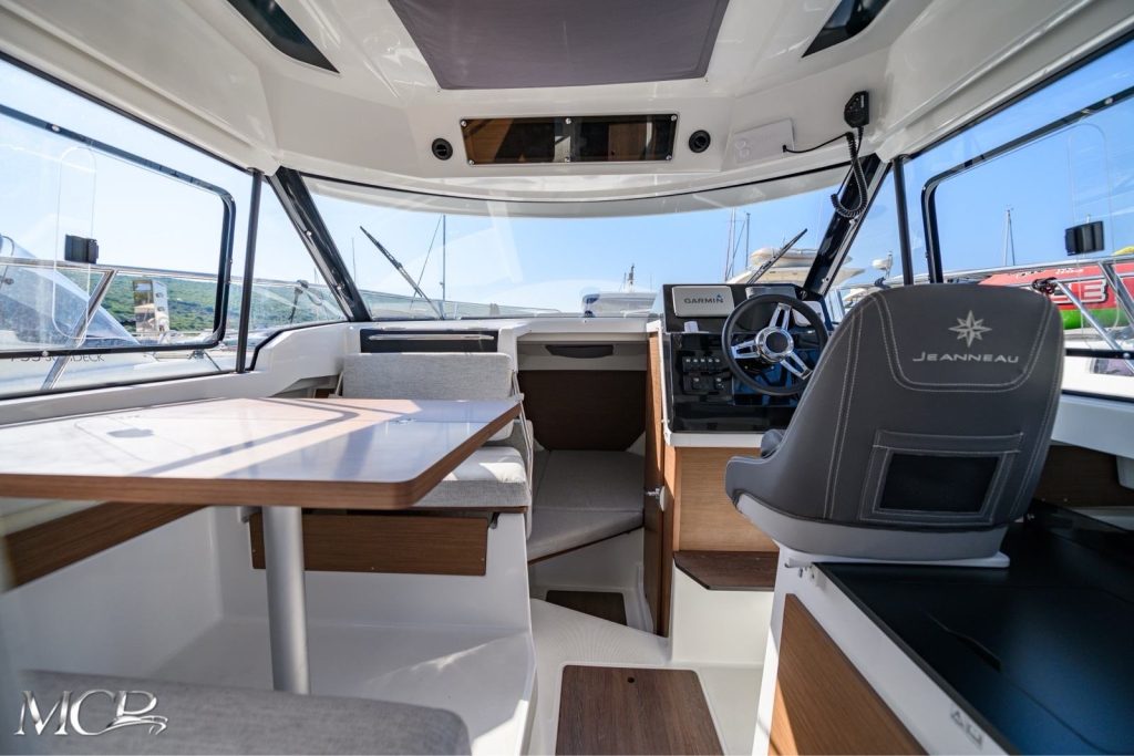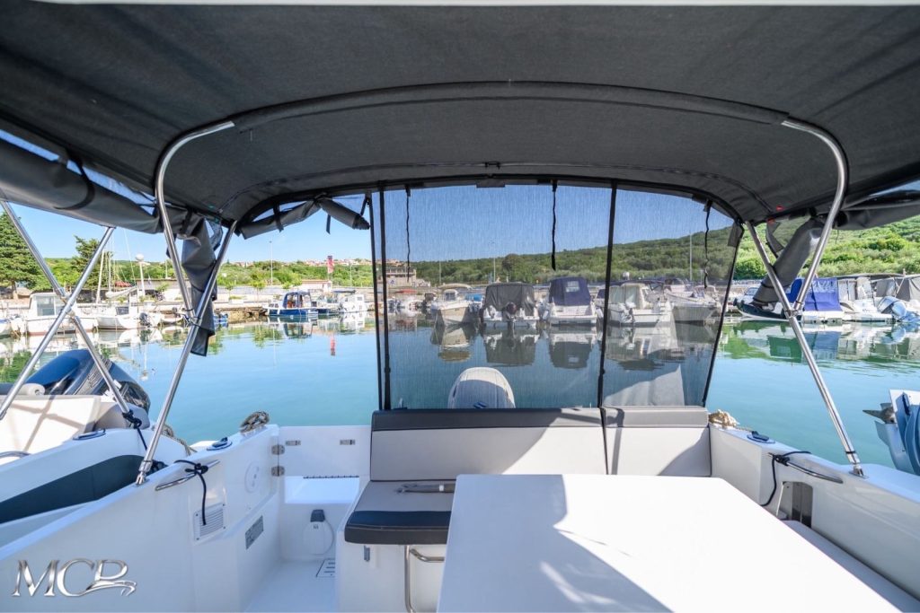 Prostran kokpit sa sjedećom garniturom i sunčalištem pruža maksimalnu udobnost, dok velika krmena platforma olakšava pristup moru i kupanje. Unutrašnjost uključuje udobnu kabinu s ležajem, kupaonicu te opremljenu kuhinju, što ovaj model svrstava među najtraženije u svojoj klasi.