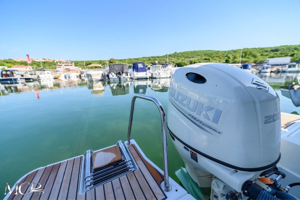 Kombinacija dimenzija od gotovo osam metara i snažnog vanjskog motora od 200 KS omogućuje vrlo dobar balans između performansi i ekonomične potrošnje goriva. Plovilo je dovoljno snažno za brzu plovidbu, ali i stabilno pri sporijim brzinama tijekom obiteljskih izleta ili ribolova.