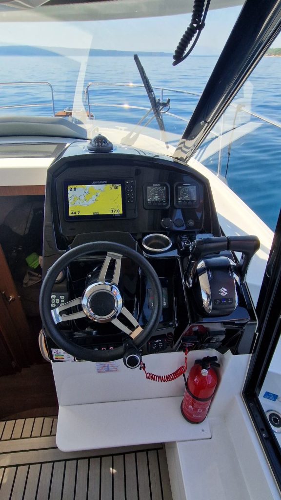 Prednost ovog modela leži u savršenom balansu između dimenzija i komfora. S dužinom od 9 metara, Merry Fisher 895 nudi osjećaj znatno većeg broda, dok istovremeno ostaje jednostavan za manevriranje i upravljanje. Dva Suzuki motora snage 175 KS osiguravaju pouzdano ubrzanje, stabilnost na krstarećim brzinama i sigurnost pri dužim plovidbama, uz razumnu potrošnju goriva.