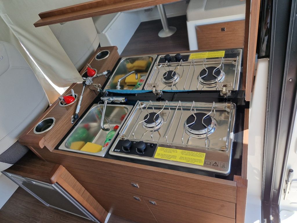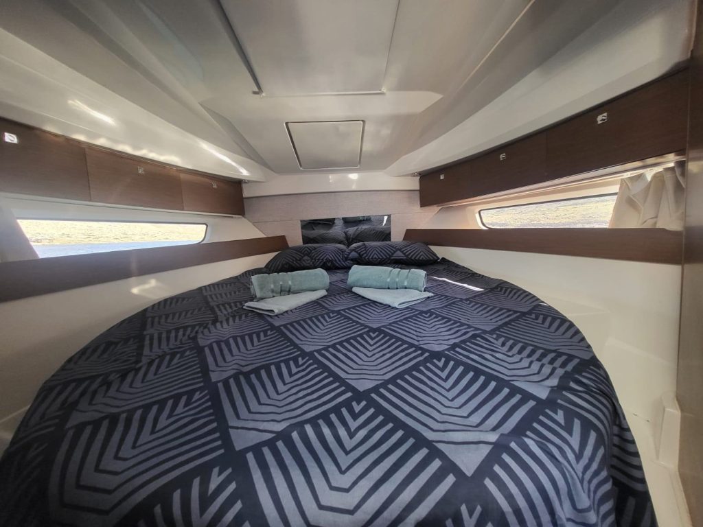 Unutarnji raspored osmišljen je za boravak više osoba, s dovoljno prostora za spavanje, kuhanje i opuštanje, dok vanjski kokpit i krmeni dio omogućuju ugodan boravak na otvorenom tijekom ljetnih dana. Upravo zbog te svestranosti, ovaj model je čest izbor i za privatne vlasnike i za charter flote.