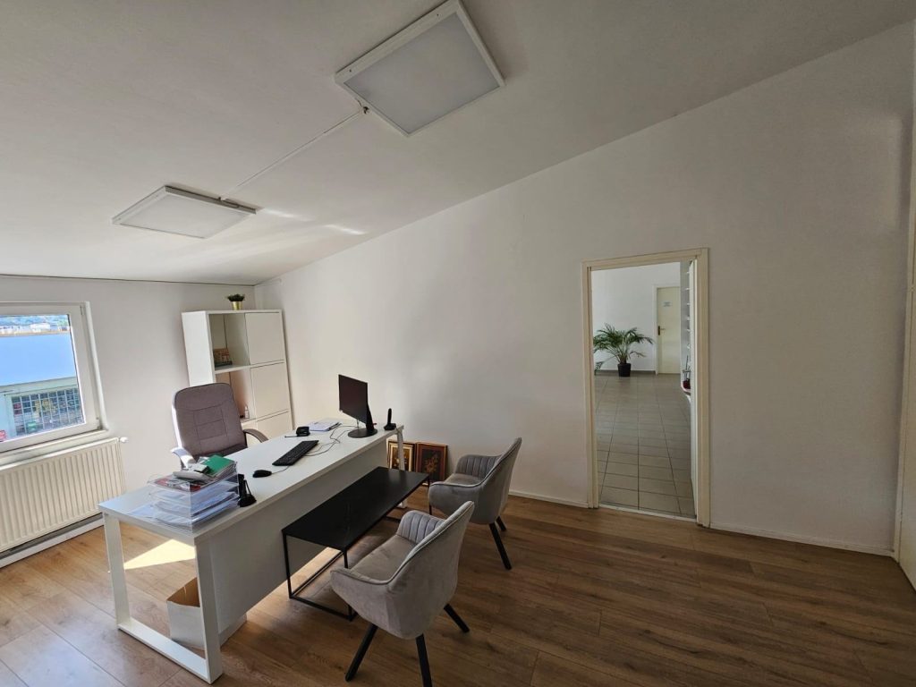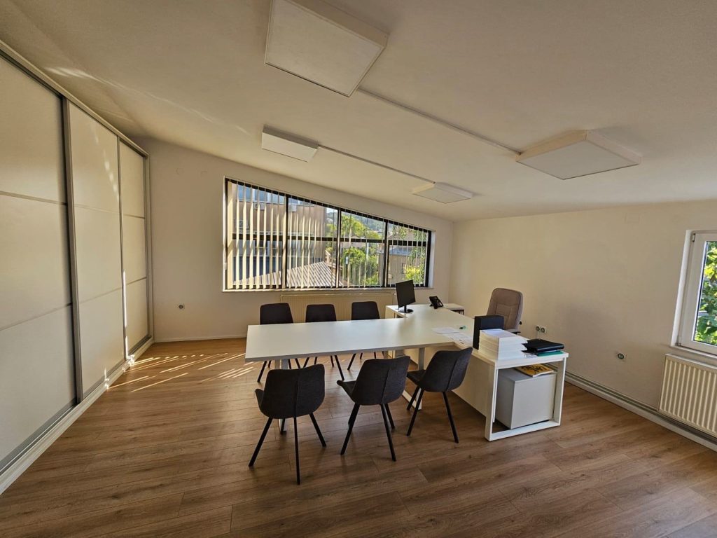 Ukupnih 1.050 m² zatvorenog prostora, uz uređeno dvorište i parking, čini ovaj objekt izuzetno prilagodljivim različitim djelatnostima – od skladišno-distribucijskih centara do uredsko-prodajnih poslovanja.