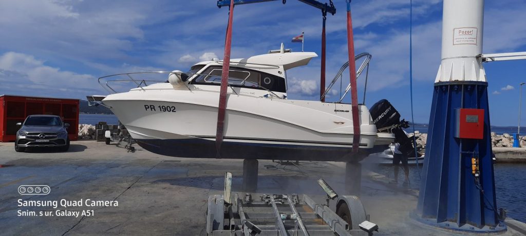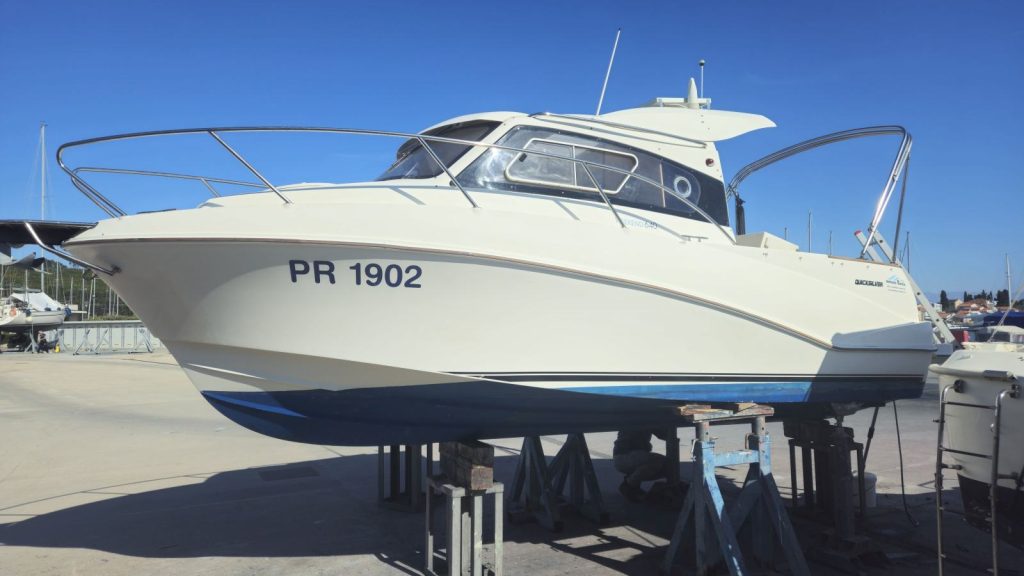 Tijekom 2025. godine napravljeni su značajni servisi i ulaganja: zamijenjena oba akumulatora, trim motora, pumpe goriva, filteri, cinkovi, ulje u peti i impeler, a postavljen je i novi koper, čime je trup dodatno zaštićen i spreman za sezonu.