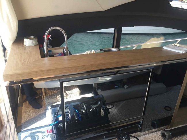 Vanjski prostori osmišljeni su za maksimalno uživanje – tikovina na palubi i kokpitu, hidraulična krmena platforma, garaža za tender, električni pasarela i snažan bow thruster omogućuju jednostavno manevriranje i pristajanje.
