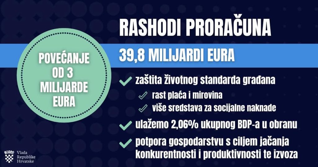 Vlada ističe da je cilj proračuna – biti čvrst oslonac građanima i gospodarstvu, uz nastavak jačanja Hrvatske u međunarodnim okvirima.