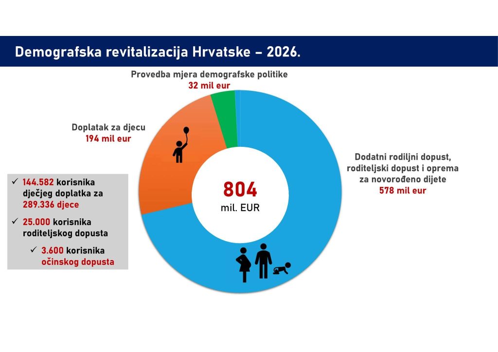 Samo za demografske mjere predviđeno je 804 milijuna eura, što uključuje: