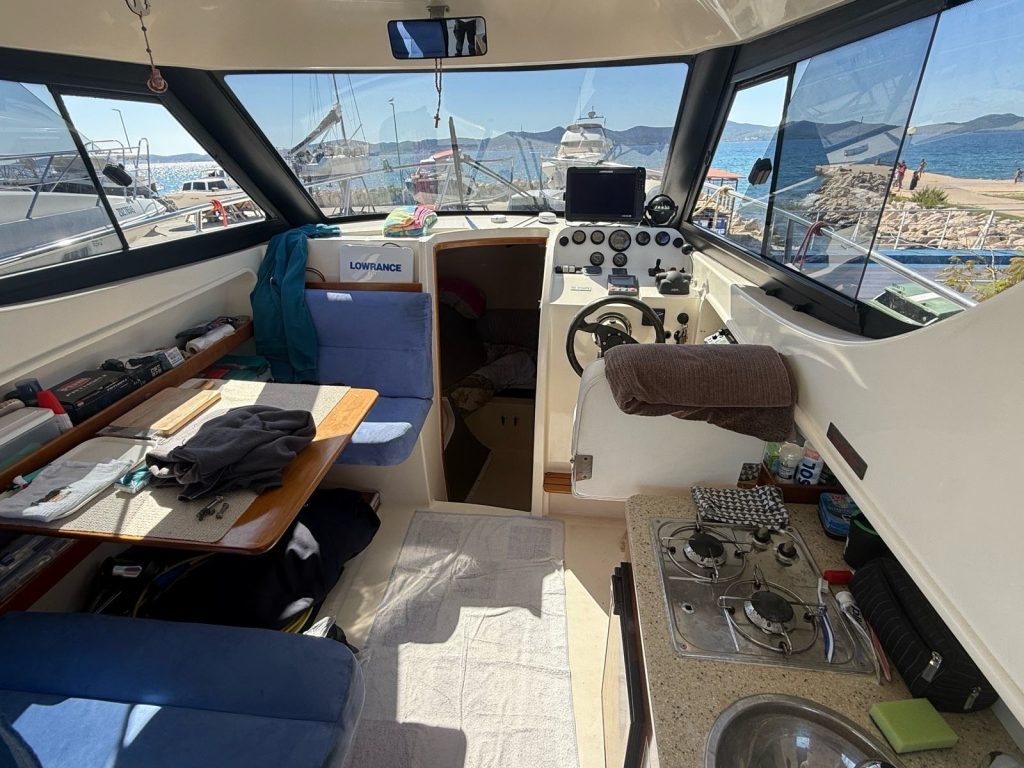 Raspored prostora osmišljen je za višednevni boravak, uz kuhinju, grijanje, sanitarni čvor i dovoljne spremnike vode. Kombinacija ribolovne opreme i komfora za obitelj čini ovaj model univerzalnim rješenjem – jednako prikladnim za sportski ribolov kao i za ljetna krstarenja.