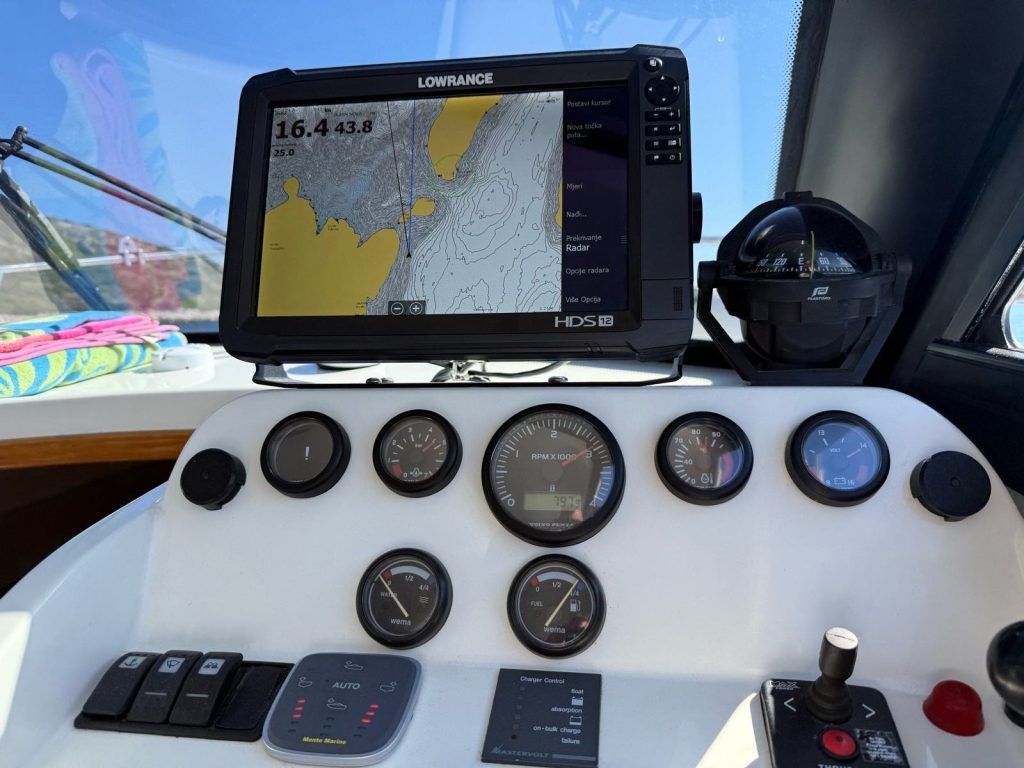 Volvo D4 motor snage 260 KS osigurava optimalan balans između performansi i potrošnje, omogućujući sigurnu i mirnu plovidbu pri putnoj brzini, ali i dovoljno snage kada je potrebno brže reagirati na moru. Upravljivost dodatno olakšavaju pramčani potisnik i autopilot, što je posebno korisno pri manevriranju u marinama.