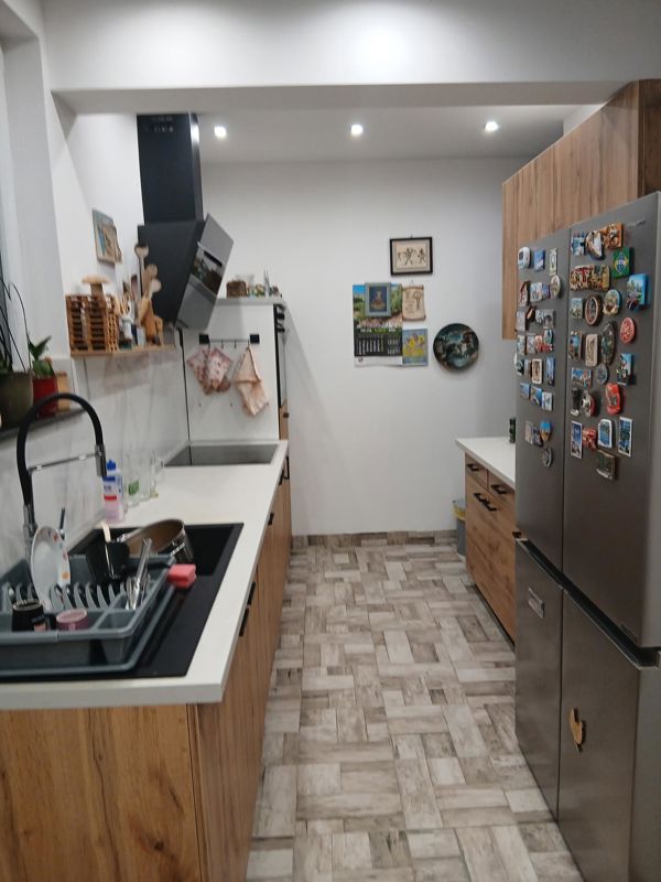 Kuća je izgrađena 2023. godine i pažljivo je osmišljena kako bi pružila funkcionalan i otvoren prostor za svakodnevni život. Glavni dio čini prostrani dnevni boravak povezan s blagovaonicom i kuhinjom u open space konceptu, što prostoru daje dodatnu svjetlost i osjećaj širine. Iz dnevnog dijela izlazi se na terasu površine 35 m², koja može postati centralno mjesto za opuštanje ili druženja.