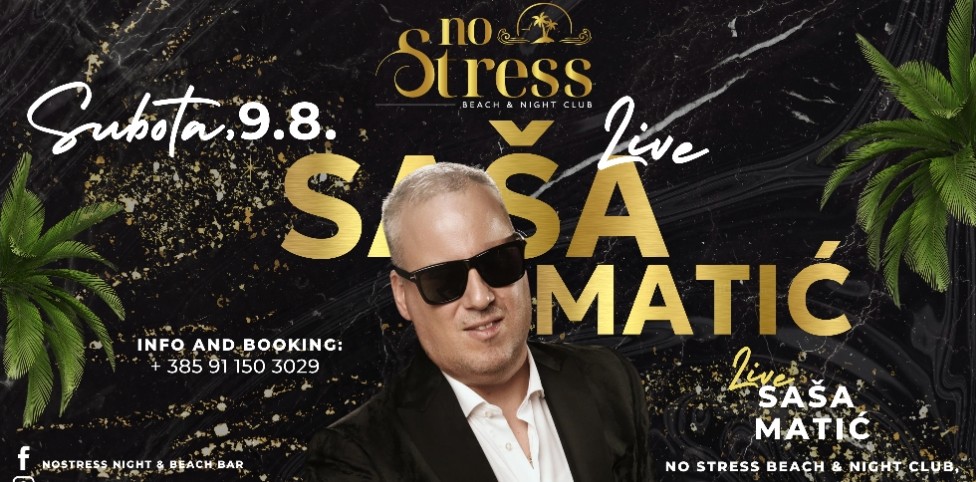 Ljubitelji vrhunske glazbe i nezaboravne atmosfere, spremite se za spektakl! U subotu, 9. kolovoza, jedan od najpoznatijih glazbenika s ovih prostora, Saša Matić, dolazi u No Stress Beach & Night Club u Splitu. Očekuje vas večer puna emocija, hitova i vrhunske zabave na jednoj od najatraktivnijih ljetnih lokacija na Jadranu.