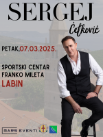 Labin će 7. ožujka 2025. godine postati središte glazbenih emocija jer u Sportskom centru Franko Mileta nastupa jedan od najomiljenijih pop izvođača regije – Sergej Ćetković! Očekuje nas večer ispunjena njegovim najvećim hitovima poput “Pogledi u tami”, “Kad ti zatreba”, “Korov”, “Zar je kraj”, i mnogih drugih.