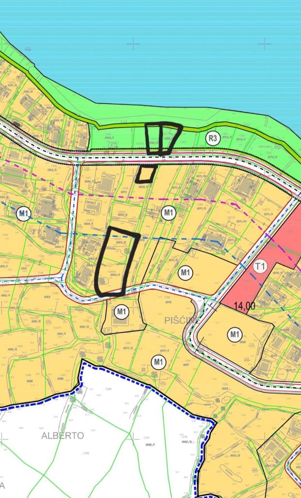 Glavni dio zemljišta nalazi se u M1 zoni (mješovita – pretežno stambena), što omogućuje izgradnju obiteljske kuće, luksuzne vile ili turističkog objekta. Donji dio parcele u R3 zoni, smješten uz more, dodatno povećava vrijednost i pruža dodatni potencijal.