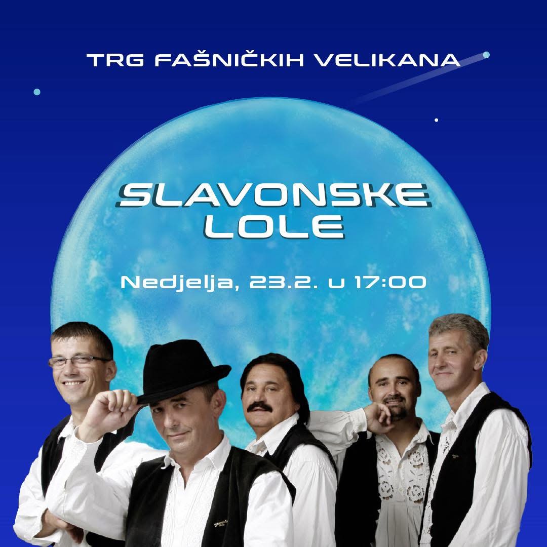 Ne propustite priliku da zapjevate i zaplešete uz Slavonske Lole te provedete nezaboravnu večer u odličnoj atmosferi! Podijelite vijest s prijateljima i vidimo se na Trgu Fašničkih Velikana!