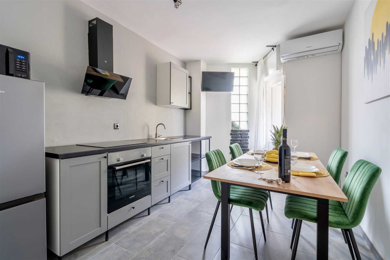 Rezervirajte moderni apartman Solis del Mar APP Pula (Tršćanska 1) – potpuno renoviran 2023., s 2 sobe, 3 klime, 3 TV-a, privatnim parkingom i terasom! Idealno za obitelji i parove, samo 100 m od Arene i mora.