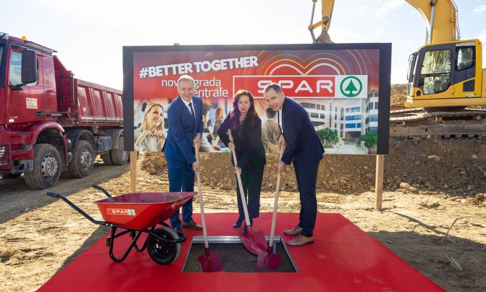 Simboličan početak radova obilježen je danas polaganjem temeljnog kamena, kojem su prisustvovali direktori Spara Hrvatska Goran Vukelić i David Kovačević, voditelj projekta Damir Županić, te glavna direktorica Hrvatske udruge poslodavaca (HUP) Irena Weber.