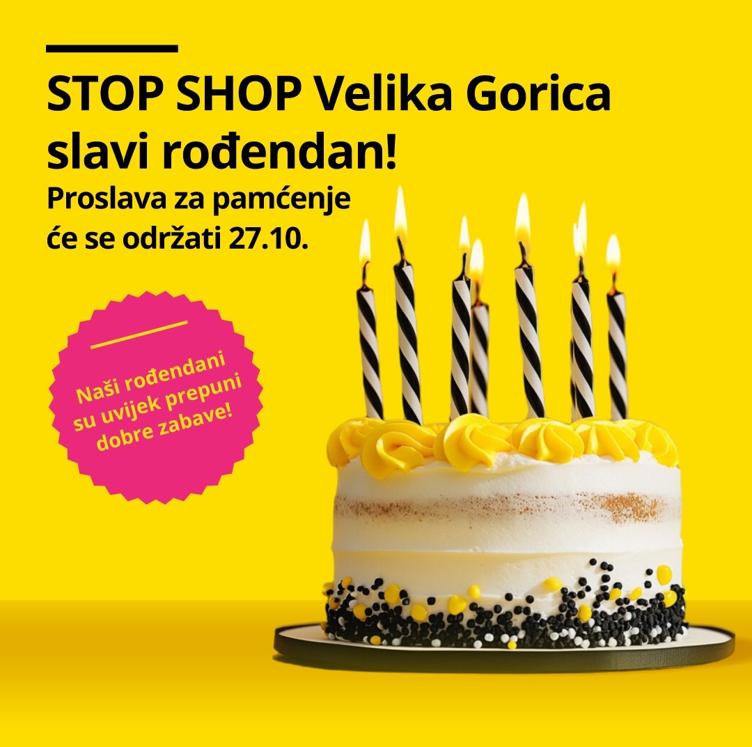 Ne propustite rođendansku proslavu u STOP SHOP Velika Gorica 27. listopada! Očekuje vas nezaboravno iskustvo ispunjeno zabavom, popustima i aktivnostima za cijelu obitelj. Pridružite nam se i budite dio ovog posebnog događaja!